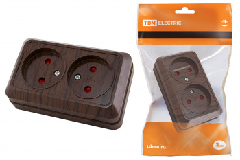 Розетка двойная 2П открытой установки с з/ш IP20 10А, бук "Ладога" TDM
