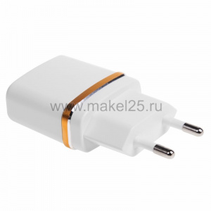 Сетевое зарядное устройство USB (СЗУ) (5 V, 2100 mA) белое с золотой полоской REXANT
