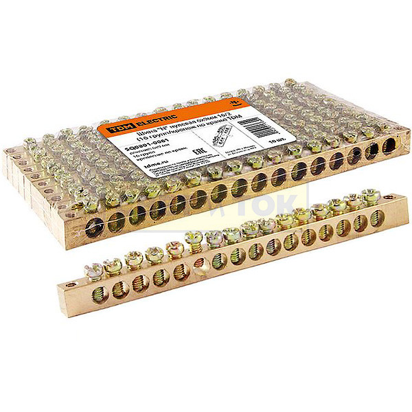 Шина "N" нулевая 6х9мм 16/2 (16 групп/крепеж по краям) TDM