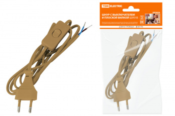 Шнур с выключателем и плоской вилкой ШУ01В ШВВП 2х0,75мм2 2м. бронза TDM