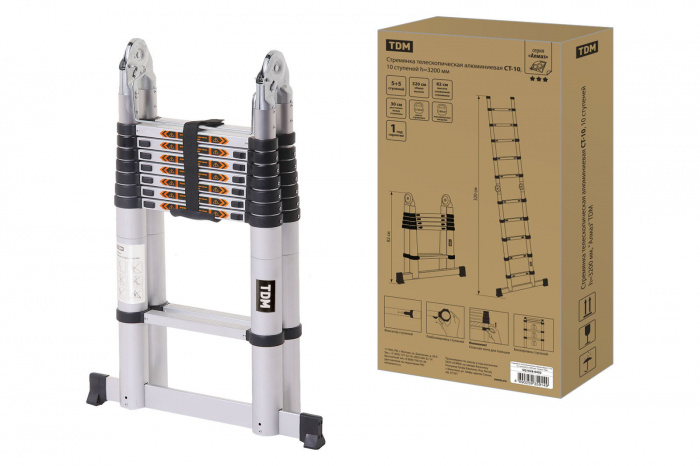 Стремянка телескопическая алюминиевая СТ-10, 10 ступеней h=3200 мм, "Алмаз" TDM