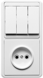 TDM Блок выкл 3кл.+ розетка с/з с защ.шторкой внутр. вертикальный