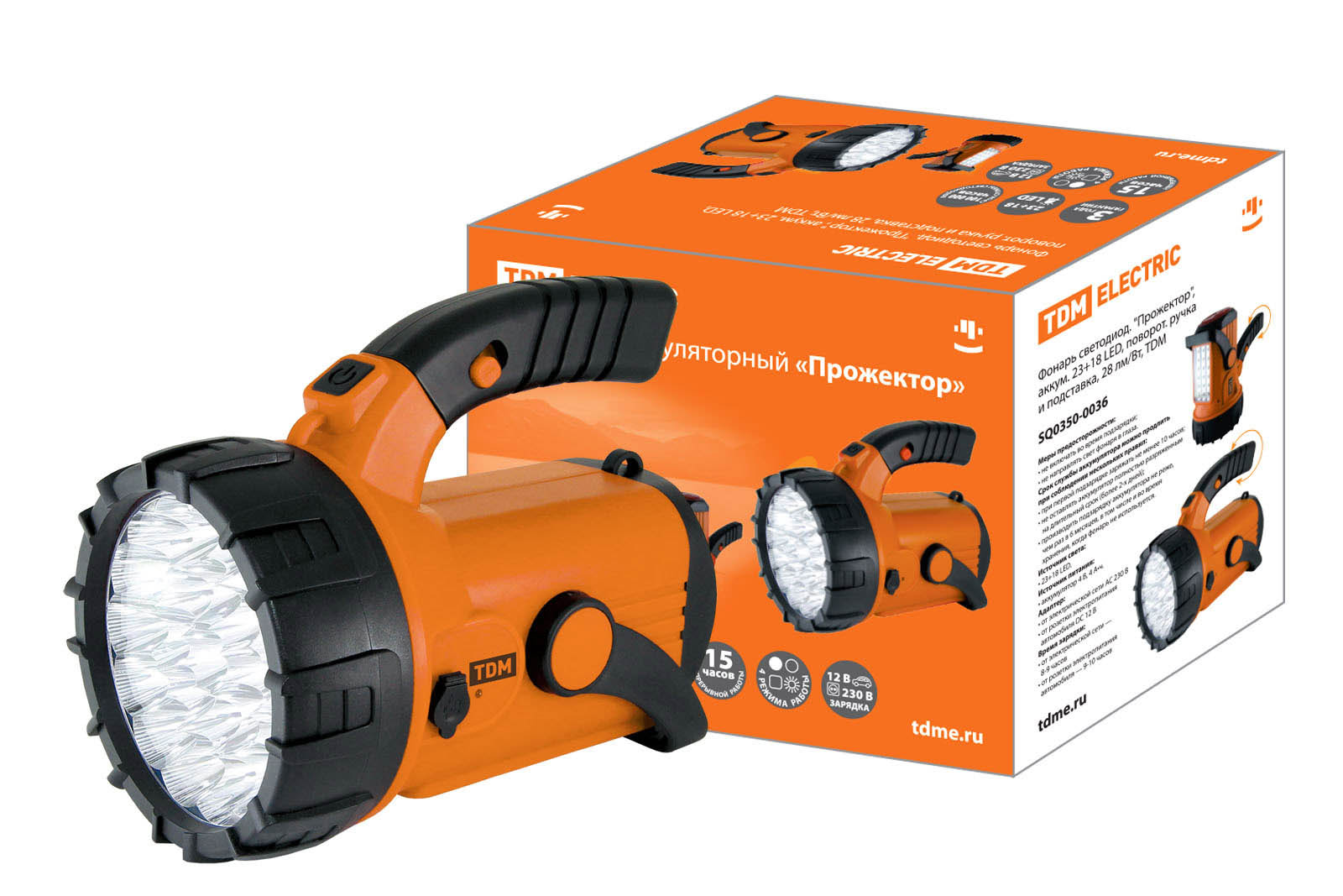 TDM фонарь "Прожектор", аккум. 23+18 LED, поворот. ручка и подставка