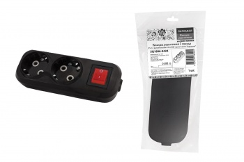 TDM Колодка 2 гнезда с/з c выключателем 16А черная серии "Народная"