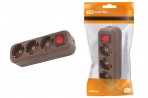 TDM Колодка 3 гнезда с/з с выключателем 16А 250В "Эко" (бук)