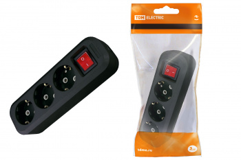 TDM колодка 3 гнезда с/з с выключателем черная
