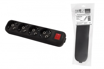 TDM Колодка 4 гнезда с/з c выключателем 16А черная серии "Народная"