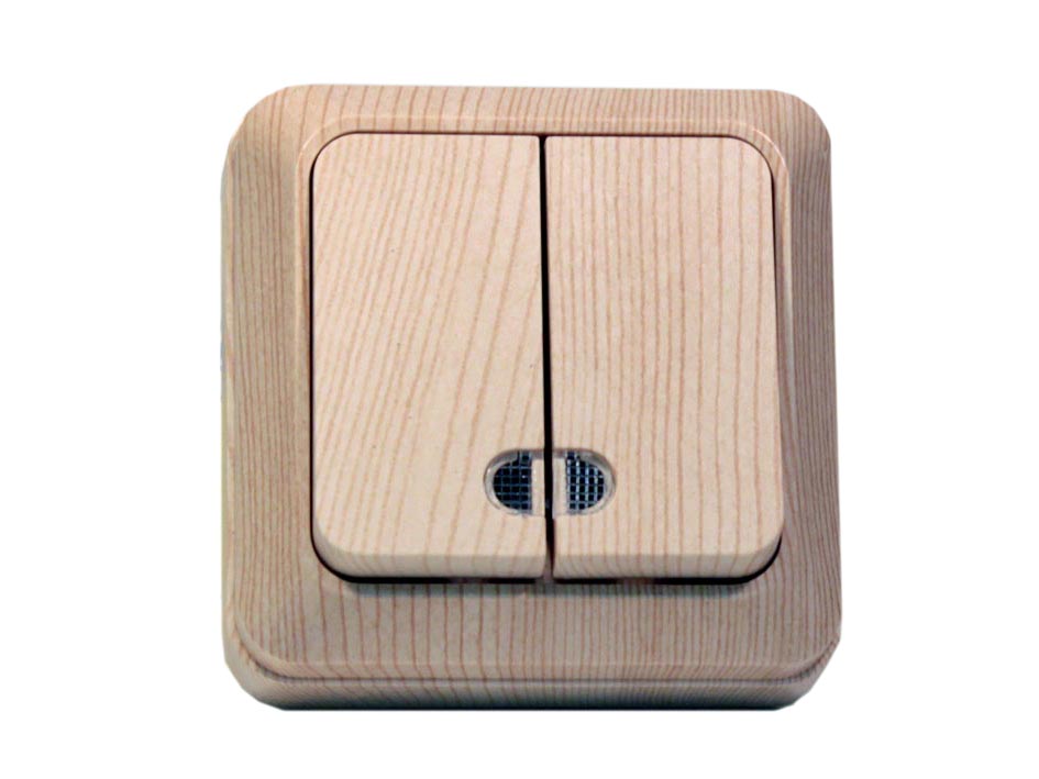 TDM Ладога открытая уст. выключатель 2 кл. с подсв. сосна