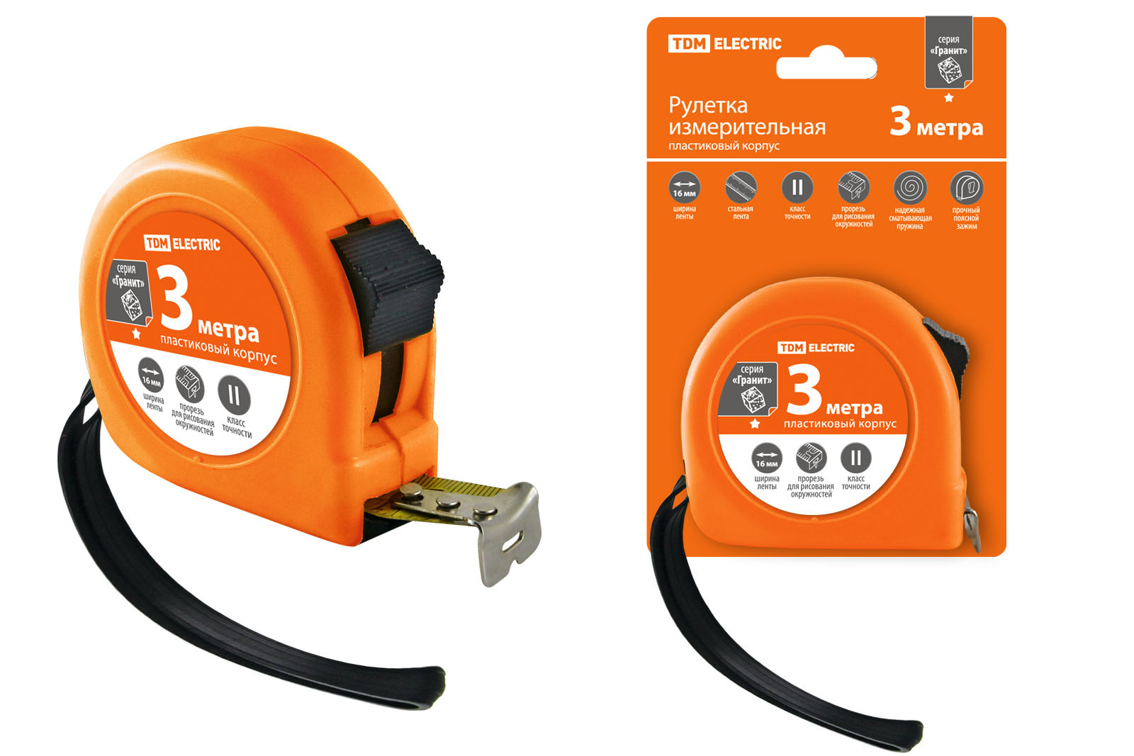 TDM Рулетка 3 м, стальная лента, ширина 16 мм, пластиковый корпус, "Гранит"
