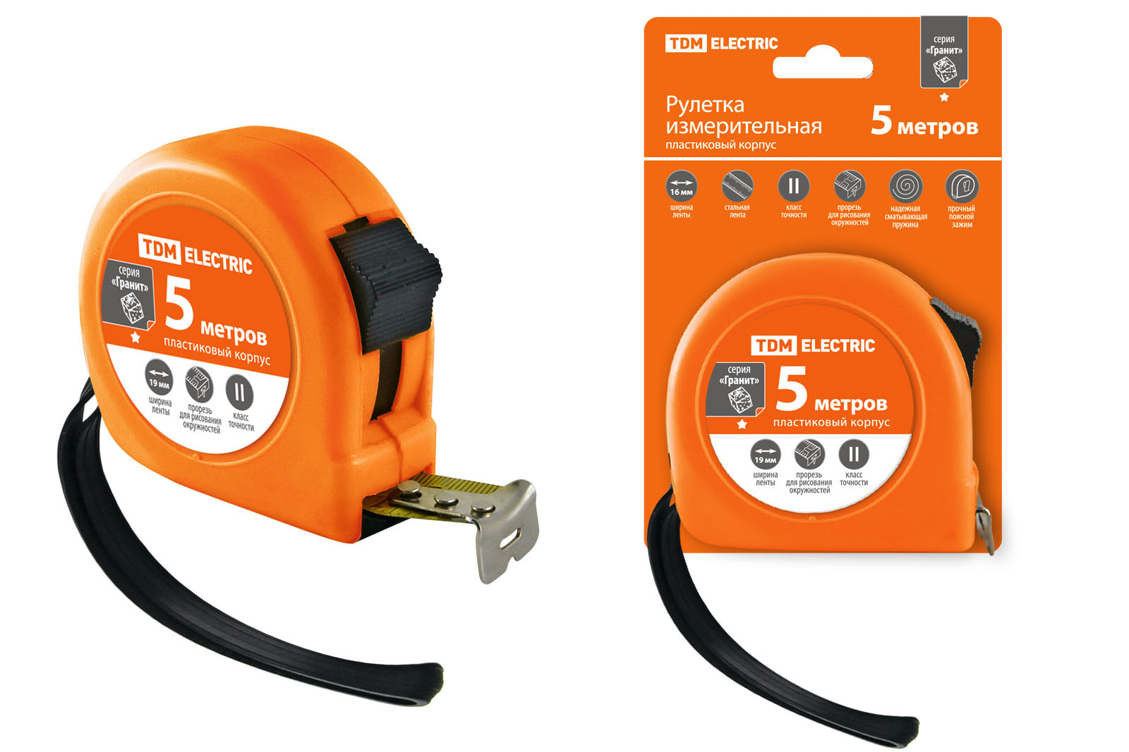 TDM Рулетка 5 м, стальная лента, ширина 19 мм, пластиковый корпус, "Гранит"