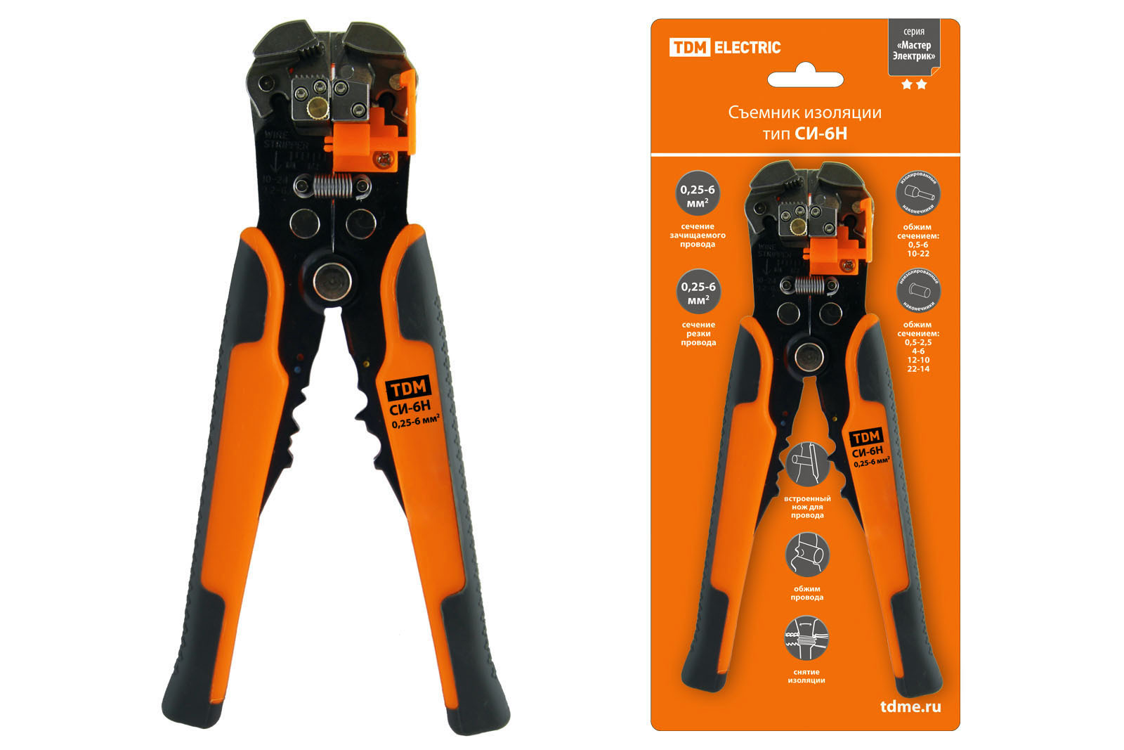 TDM съемник изоляции СИ-6Н, сечения: зачистки 0,25-6 мм, обжима 0,5-6 мм "МастерЭлектрик"