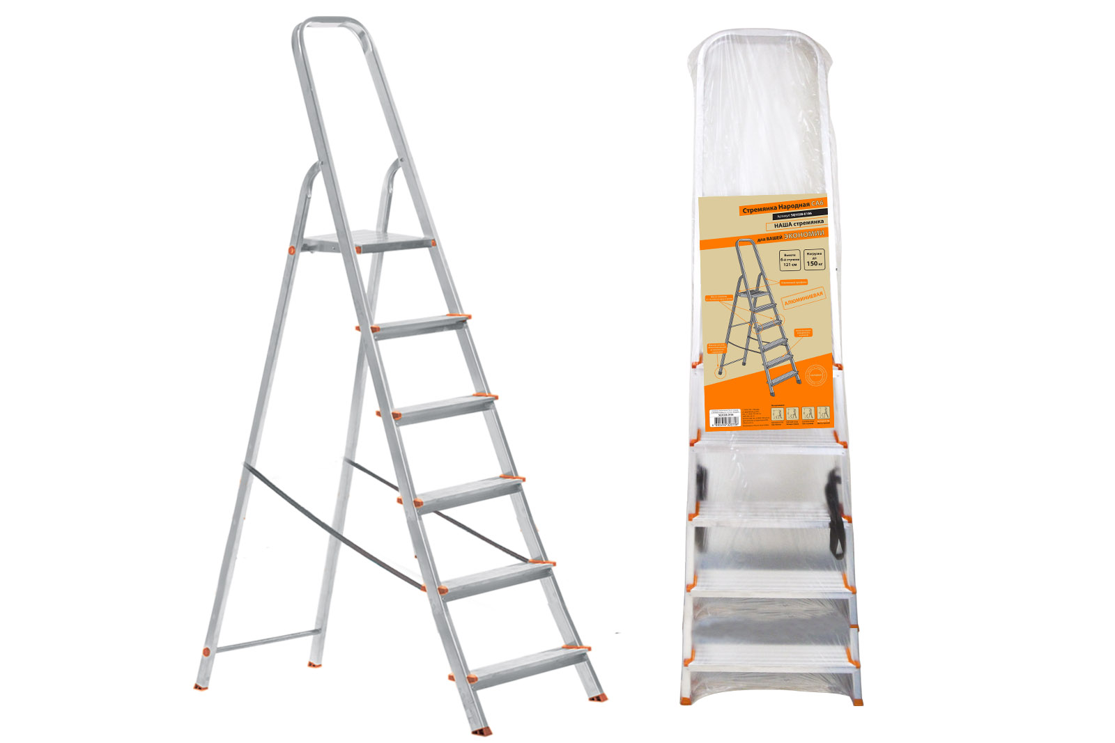 TDM стремянка алюминиевая СА6, 6 ступеней, усиленный профиль h=1210 мм, Народная