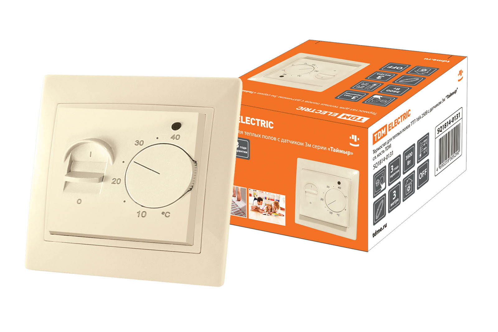TDM термостат для теплых полов ТТП 16А 250В с датчиком 3м "Таймыр" крем