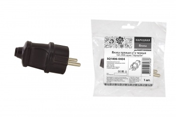TDM Вилка прямая с/з черная 16А серии "Народная"
