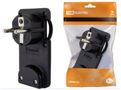 TDM Вилка угловая плоская (8 мм) черная 16А 250В