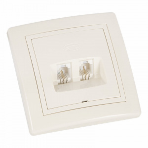 Телефонная розетка 2 гн. RJ-11(6P-4C), внутренняя, накладная рамка, кремовая REXANT