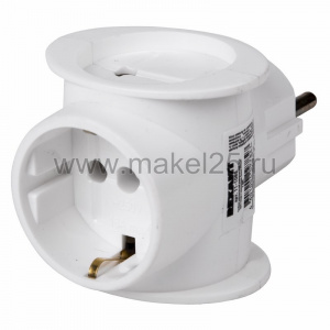 Тройник электрический универсальный 16 А одно гнездо с заземлением белый REXANT