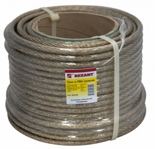 Трос стальной в ПВХ оплетке d=10,0 мм, прозрачный (катушка 50 м) REXANT