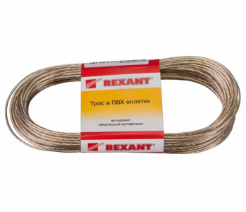 Трос стальной в ПВХ оплетке d=2,0 мм, прозрачный (моток 20 м) REXANT