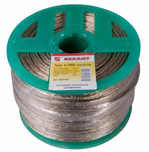 Трос стальной в ПВХ оплетке d=3,0 мм, прозрачный (бухта 200 м) REXANT