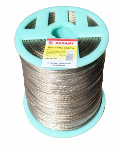 Трос стальной в ПВХ оплетке d=3,5 мм, прозрачный (бухта 200 м) REXANT