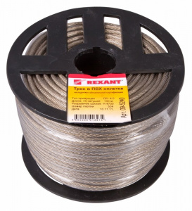 Трос стальной в ПВХ оплетке d=4,0 мм, прозрачный (бухта 100 м) REXANT