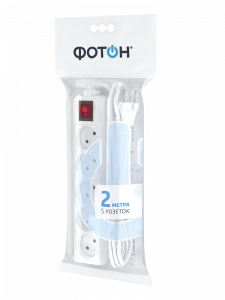 Удлинитель сетевой "ФОТОН" 10-25S, 2м, 5 розеток, 10А, с выкл., Белый