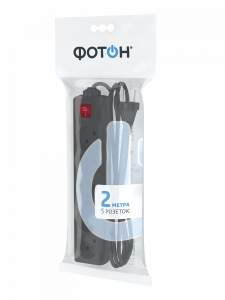 Удлинитель сетевой "ФОТОН" 10-25S, 2м, 5 розеток, 10А, с выкл., Черный