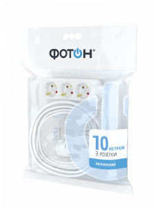 Удлинитель сетевой "ФОТОН" 16-103Е, 10м, 3 розетки, 16А, с заземл, Белый