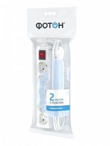Удлинитель сетевой "ФОТОН" 16-25ЕS, 2м, 5 розеток, 16А, с выкл., с заземл., Белый
