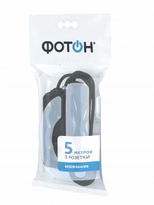Удлинитель сетевой "ФОТОН" 16-53Е, 5м, 3 розетки, 16А, с заземл.,Черный