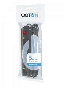 Удлинитель сетевой "ФОТОН" 16-55ЕS, 5м, 5 розеток, 16А, с выкл., с заземл., Черный