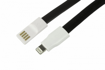 USB кабель для iPhone 5/6/7 моделей плоский силиконовый шнур черный REXANT