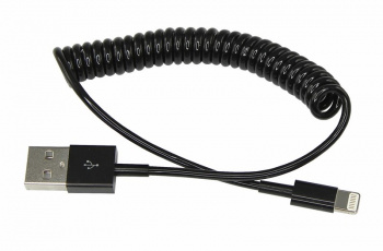 USB кабель для iPhone 5/6/7 моделей шнур спираль 1 м черный