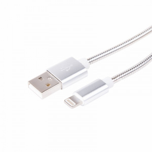 USB кабель для iPhone 5/6/7 моделей, шнур в металлической оплетке серебристый REXANT