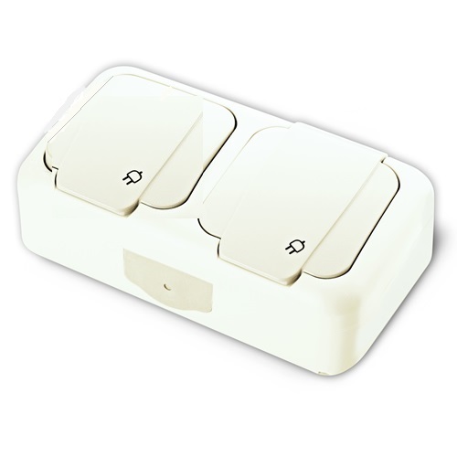 Vi-ko Palmiye блок Розетка 2-я с крышкой IP54 открытая установка белый