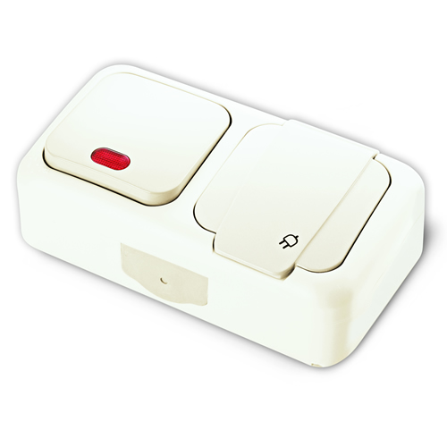 Vi-ko Palmiye блок В1 с подсветкой+Розетка с крышкой IP54 открытая установка белый