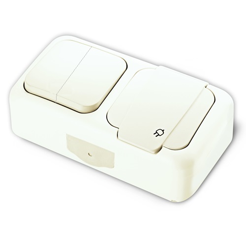 Vi-ko Palmiye блок В2+Розетка с крышкой IP54 открытая установка белый