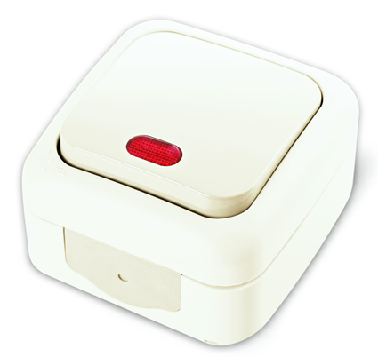 Vi-ko Palmiye выключатель 1 кл. с подсветкой IP54 открытая установка белый