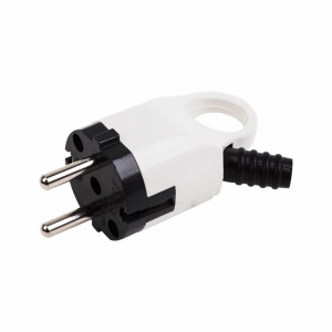 Вилка угловая с ушком (кольцом) с/з белая 16 А PROCONNECT