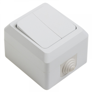 Выключатель двухклавишный влагозащищенный открытой установки 10 А IP44 PROCONNECT