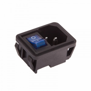 Выключатель клавишный 250V 10А (4с) ON-OFF синий с подсветкой и штекером C14 3PIN REXANT