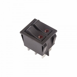Выключатель клавишный 250V 15А (6с) ON-OFF черный с подсветкой ДВОЙНОЙ REXANT