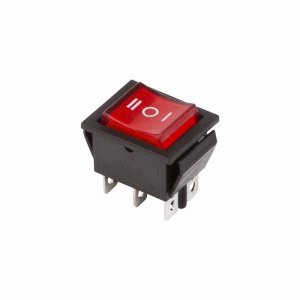 Выключатель клавишный 250V 15А (6с) ON-OFF-ON красный с подсветкой и нейтралью REXANT