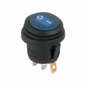 Выключатель клавишный круглый 250V 6А (3c) ON-OFF синий с подсветкой ВЛАГОЗАЩИТА REXANT