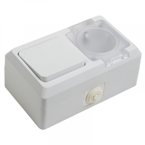 Выключатель одноклавишный + розетка влагозащищенная для открытой установки с\з с крышкой 10 А IP44 PROCONNECT
