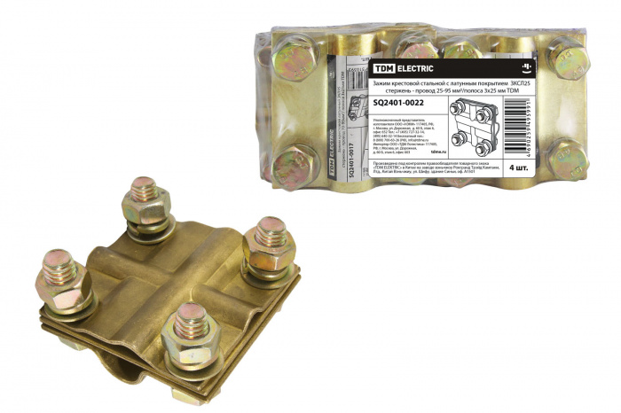 Зажим крестовой стальной с латунным покрытием ЗКСЛ25 стержень - провод 25-95мм2/полоса 3х25мм TDM