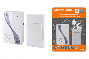 Звонок беспроводной на батарейках ЗББ-11/4-32М (32 мелодии, кнопка IP30, 2х1,5В ААА) TDM