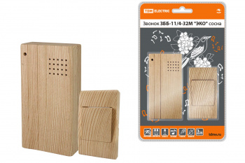 Звонок беспроводной на батарейках ЗББ-11/4-32М "ЭКО" сосна (32 мелодии, кнопка IP30, 2х1,5В ААА) TDM