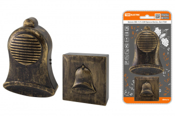 Звонок беспроводной на батарейках ЗББ-11/5-32М бронза (32 мелодии, кнопка IP30, 3х1,5В АА) TDM